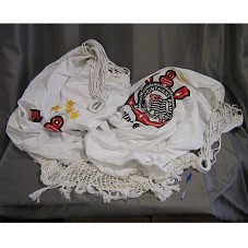 REDE DE DESCANSO EM TECIDO NA COR BRANCA E FRANJAS DA MESMA COR. POSSUI BRASÕES DO 'SPORT CLUBE CORINTHIANS PAULISTA', BORDADOS PRÓXIMOS ÀS DUAS PONTAS.