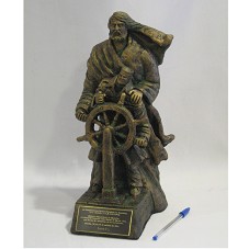 ESCULTURA (35 CM) CONFECCIONADO EM ARGILA, PINTADA EM TONS DE BRONZE, COM DETALHES EM VERDE, IMITANDO ESSE METAL. FIGURA DE UM MARINHEIRO, SEGURANDO UM TIMÃO DE NAVIO. ATRÁS DELE, A FIGURA DE UM HOMEM BEM MAIOR, COMO UM DEUS, APOIANDO-O E O AJUDANDO A SEGURAR O LEME. NA LATERAL DA ESCULTURA, NOME DO ARTISTA 'EDVALDO 2010 / CEARÁ-MIRIM RN'. NA PARTE FRONTAL, PLACA METÁLICA CONTENDO A INSCRIÇÃO 'AO EXCELENTÍSSIMO SENHOR PRESIDENTE DA REPÚBLICA, LUIZ INÁCIO LULA DA SILVA, OFERECE O COMANDANTE DA MARINHA, ALMIRANTE-DE-ESQUADRA JULIO SOARES DE MOURA NETO, POR OCASIÃO DO TRANSCURSO DE SEU ANIVERSÁRIO. BRASÍLIA, DF, EM 27 DE OUTUBRO DE 2010.'.