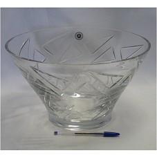 VASO DECORATIVO (19X34X34 CM) CONFECCIONADO EM CRISTAL, DE FORMATO CÔNICO, COM BASE MENOR QUE BOCA. POSSUI BOJO TRABALHADO COM DESENHOS DE TRIÂNGULOS, DE DIFERENTES TAMANHOS. NA BORDA, A COROA E AS INICIAIS REAIS GRAVADAS. POSSUI NOME DO FABRICANTE GRAVADO NA BASE. ACONDICIONADO EM ESTOJO FORRADO DE NAPA AZUL MARINHO, COM MESMAS INICIAIS NA TAMPA.