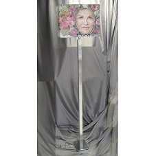 LUMINÁRIA DE PISO (181 CM), COM CÚPULA BRANCA, DE FORMATO RETANGULAR (35,5X46X21 CM), ONDE, NA PARTE FRONTAL, HÁ PINTURA RETRATANDO O ROSTO DA PRIMEIRA-DAMA MARISA LETÍCIA, ENTRE ROSAS. NA LATERAL, ASSINATURA DO ARTISTA 'ROBERTO CAMASMIE 09'. POSSUI HASTE EM ALUMÍNIO ESCOVADO E BASE EM AÇO CROMADO. SAINDO DA BASE, FIO COM PLUG PARA ENTRADA EM TOMADA.
