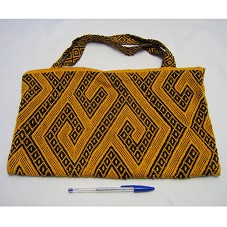 BOLSA FEMININA (23X37 CM) CONFECCIONADA EM TEAR, NAS CORES LARANJA E PRETO, COM DESENHOS GEOMÉTRICOS. POSSUI ALÇA MÉDIA E ZÍPER COMO FECHAMENTO.