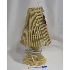 ABAJUR (47 CM) CONFECCIONADO EM PAPEL RECICLADO. A BASE FEITA DE ROLO DE PAPELÃO E CANUDOS DE PAPEL E A CÚPULA DE CANUDOS DE PAPEL ENROLADOS, TODOS PINTADOS NA COR BEGE. ACOMPANHA LÂMPADA LILÁS DE 127V/15W4, FIAÇÃO COM PLUG E INTERRUPTOR E CARTÃO COM A INSCRIÇÃO 'À COMPANHEIRA MARISA / ESSE ABAJUR FOI FEITO PELOS AGENTES DE LIMPEZA (GARIS) DE LAURO DE FREITAS, / COM PAPEL TIRADO DO LIXO. / QUE ESTA LUZ ILUMINE SEU CAMINHO / E DE TODA SUA FAMÍLIA. UM BEIJO / . MOEMA'
