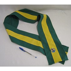 FAIXA (148X13 CM), IMITANDO A FAIXA PRESIDENCIAL, CONFECCIONADA EM TECIDO VERDE, COM LISTRA AMARELA AO CENTRO. POSSUI AS PONTAS UNIDAS POR UM BÓTON, EM METAL PRATEADO, DE FORMATO CIRCULAR, COM FOTOGRAFIA DA CANDIDATA DILMA ROUSSEFF E A INSCRIÇÃO 'PRESIDENTE DILMA 13'.