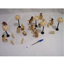PRESÉPIO COMPOSTO POR VINTE E TRÊS PEÇAS CONFECCIONADAS EM MADEIRA CLARA: TRÊS REIS MAGOS (7,5 CM, 7,5 CM E 9 CM), SEGURANDO POTES; TRÊS PASTORES (8 CM CADA) DOIS COM CAJADO NAS MÃOS E UM SEGURANDO UM CANDEEIRO; SEIS OVELHA (3 CM); UMA VACA (6X9 CM); UM BURRICO (7X7 CM); UM CAMELO (7X8 CM); MARIA (7 CM); JOSÉ (7 CM) E MANJEDOURA COM O MENINO JESUS (3X2X4 CM). ACONDICIONADOS EM CAIXA DE PAPELÃO NA COR LARANJA.