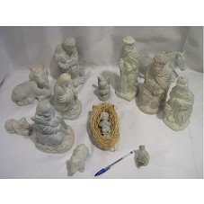PRESÉPIO COMPOSTO POR TREZE ESCULTURAS CONFECCIONADAS EM PEDRA SABÃO: UM ANJO AJOELHADO (10 CM); TRÊS REIS MAGOS (27 CM, 24 CM E 23 CM); UM PASTOR SEGURANDO UMA OVELHA (22 CM) ; DUAS OVELHAS (8 CM E 6 CM); UMA VACA DEITADA(15 CM);UM CAVALO DEITADO (14 CM); UMA GALINHA (5 CM); MARIA AJOELHADA (20 CM); JOSÉ AJOELHADO COM UM CAJADO NAS MÃOS (22 CM) E MANJEDOURA COM O MENINO JESUS (9 CM). ACOMPANHA UMA FOTOGRAFIA COM EXEMPLO DE MONTAGEM. ACONDICIONADO EM CAIXA DE PAPELÃO NA COR BRANCA.