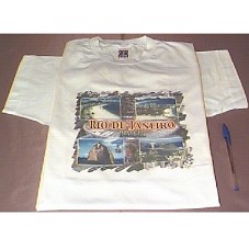 CAMISETA (TAM GG), EM MALHA BRANCA, DE MANGA CURTA. NA FRENTE, ESTAMPA COM FOTOS DO RIO DE JANEIRO E A INSCRIÇÃO 'RIO DE JANEIRO / BRASIL'.