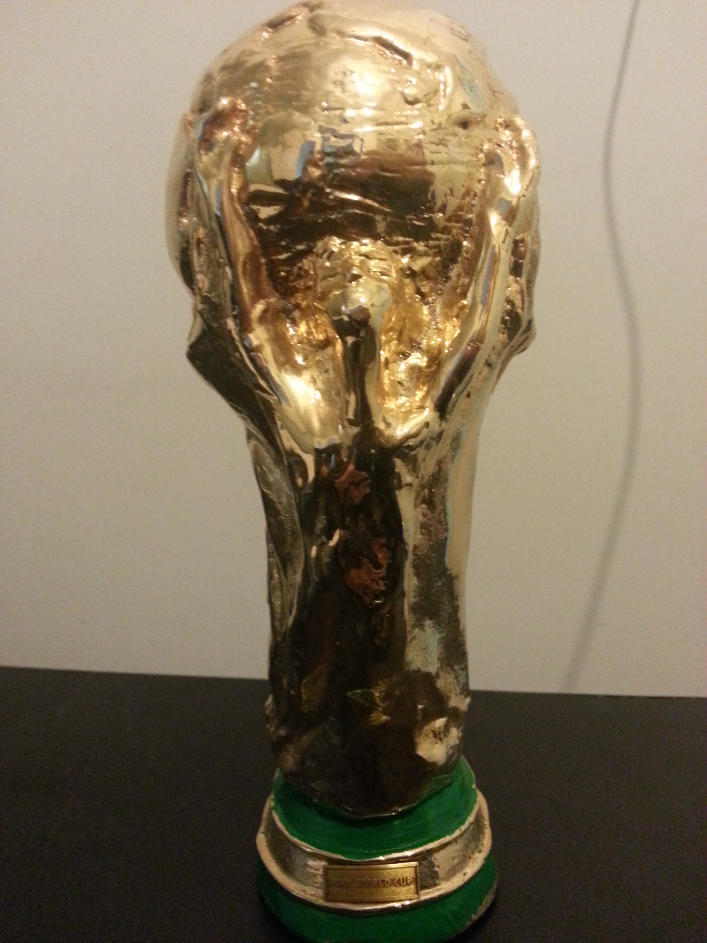 Réplica da Taça do Mundo, recebida em agenda realizada com o presidente da Confederação Brasileira de Futebol, José Maria Marin, e o presidente da Federação Paulista de Futebol, Marco Polo Del Nero (Local desconhecido, 09 mai. 2012)