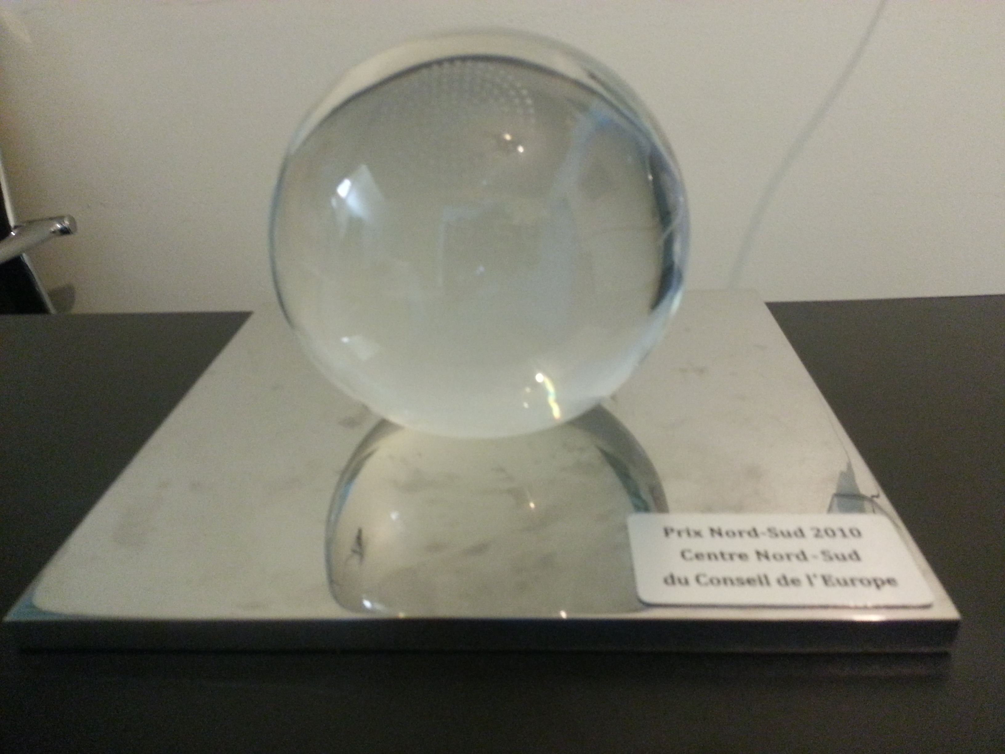 Bola de vidro do Prêmio Norte-Sul, recebida no Prix Norte-Sul 2010, no centro Norte-Sul do Conselho da Europa (Local desconhecido, Data desconhecida).