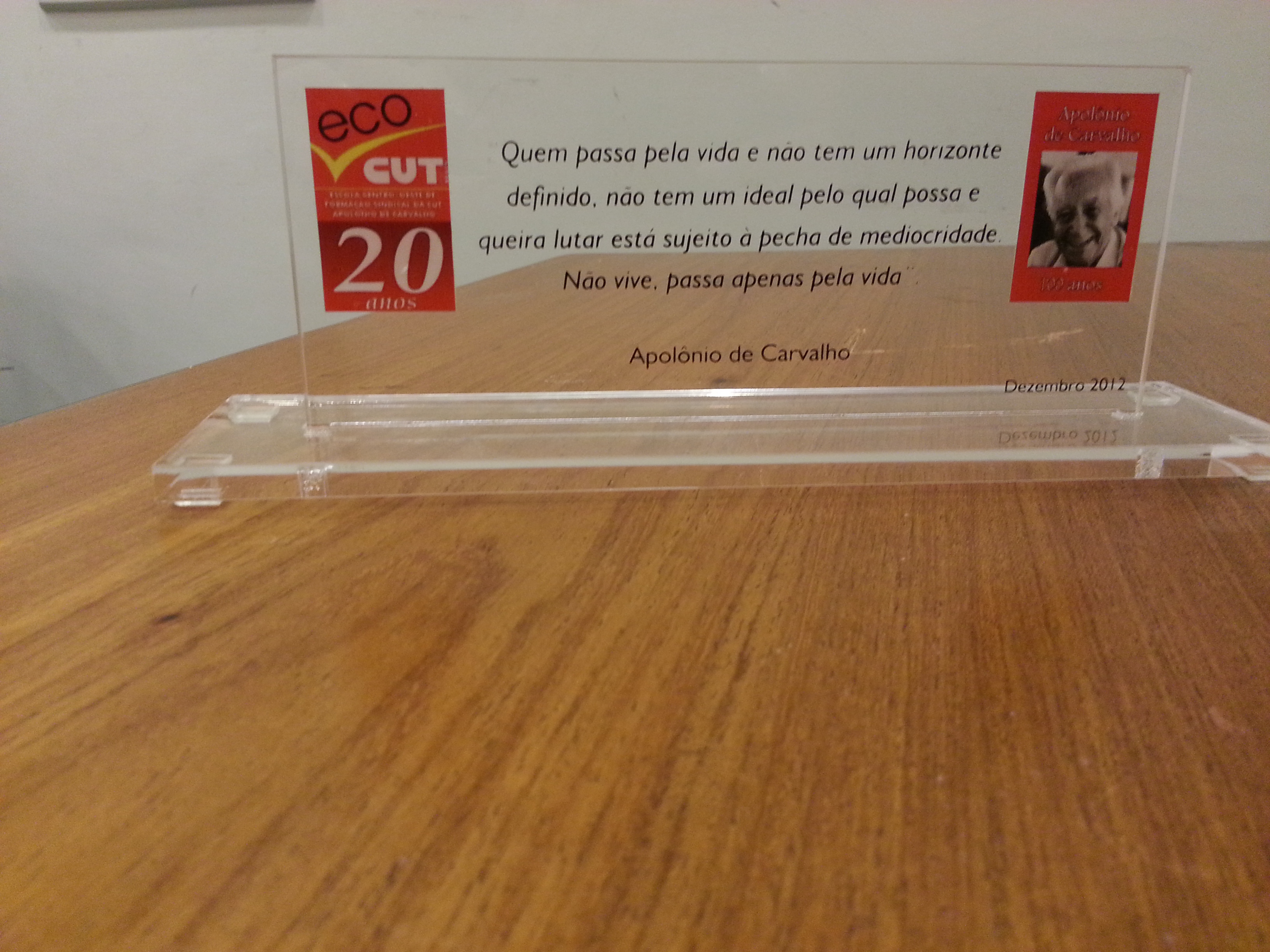 Troféu "20 anos da Escola Centro-Oeste Apolônio de Carvalho (ECO-CUT)", de dezembro de 2012 (Local desconhecido, Data desconhecida).