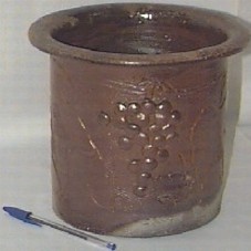 BALDE DE GELO (17,5X21 CM), EM CERÂMICA BIZEN, UMA DAS SEIS VARIEDADES MAIS ANTIGAS DO JAPÃO, PRODUZIDA NA PROVÍNCIA DE OKAYAMA. NA COR MARROM, COM ALGUNS RAJADOS CINZAS. POSSUI UM CACHO DE UVAS EM ALTO RELEVO E, DESENHOS DE FOLHAS E RAMOS GRAVADOS. ACONDICIONADO EM CAIXA DE MADEIRA (24,5X24,5X25,5 CM), COM IDEOGRAMAS JAPONESES EM UMA DAS LATERAIS E FITA AZUL MARINHO. ACOMPANHA UM PEDAÇO DE PANO (68X69 CM) NA COR AZUL. BALDE ELABORADO ESPECIALMENTE PARA SER PRESENTEADO AO PRESIDENTE LULA.