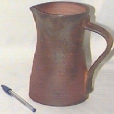 JARRA PARA VINHO (20X11 CM), COM ALÇA, EM CERÂMICA BIZEN, UMA DAS SEIS VARIEDADES MAIS ANTIGAS DO JAPÃO, PRODUZIDA NA PROVÍNCIA DE OKAYAMA. TEM TONS DE TERRA QUEIMADA E CINZA. ALÇA COM TRÊS LISTRAS GRAVADAS E DUAS ROSETAS NA EXTREMIDADE SUPERIOR, LEMBRANDO UMA COLUNA GRECA-ROMANA. ACOMPANHA DOIS INFORMATIVOS EM PAPEL VERDE COM INSCRIÇÃO EM JAPONÊS, E, UM CURRÍCULO DE 'SETSUO WATANABE', PROVÁVEL AUTOR DA PEÇA, EM INGLÊS. ACONDICIONADA EM CAIXA DE MADEIRA (22,5X16,5X16,5 CM), TENDO NA TAMPA ALGUNS IDEOGRAMAS JAPONESES.