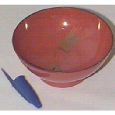 TAÇA PARA SAQUÊ (4X8,5X3,5 CM), FEITA EM LACA DA REGIÃO DE AIZU. NA COR DE TERRA, COM DESENHO DE UMA GARÇA E UMA TARTARUGA, EM DOURADO E PRETO, NO SEU INTERIOR. A PEÇA TEM CERCA DE CEM ANOS, EM REFERÊNCIA AO CENTENÁRIO DA IMIGRAÇÃO JAPONESA PARA O BRASIL. ACONDICIONADA EM CAIXA DE MADEIRA (10,5X10,5X7,5 CM), COM IDEOGRAMAS JAPONESES PINTADOS NA TAMPA, E FITA CREME COM LISTRAS AZUIS.