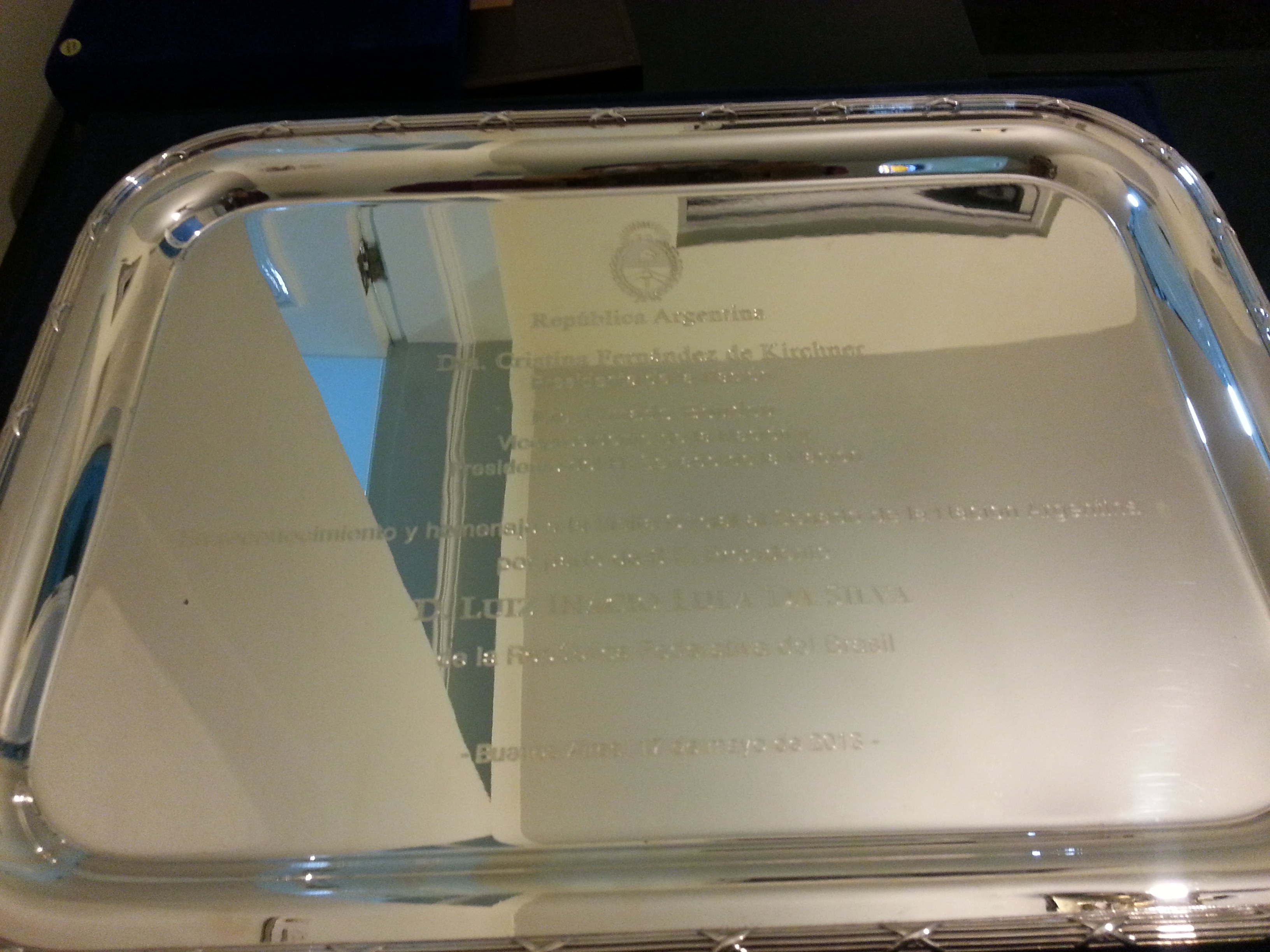 Bandeja de prata: homenagem à visita oficial ao senado da Argentina. (Argentina-AR, 17 mai. 2013).