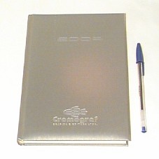 DUAS AGENDAS IGUAIS DO ANO DE 2004 (15X21X2,5 CM). NA CAPA, '2004 / CROMOGRAF GRÁFICA E EDITORA LTDA.'. CAPA FORRADA COM PAPEL TEXTURIZADO VERDE METÁLICO.